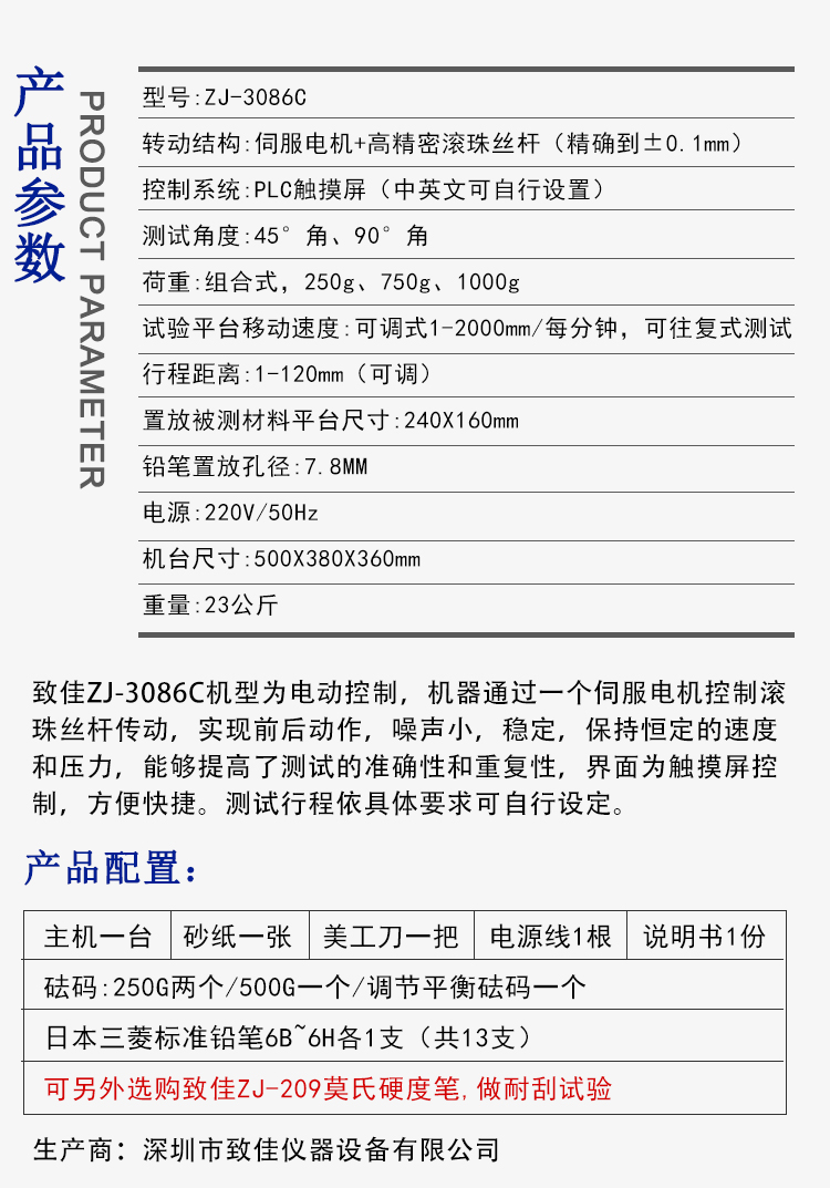 深圳市致佳仪器设备有限公司发布的致佳触摸电动铅笔硬度计电动莫氏硬度计ZJ-3086C图集库