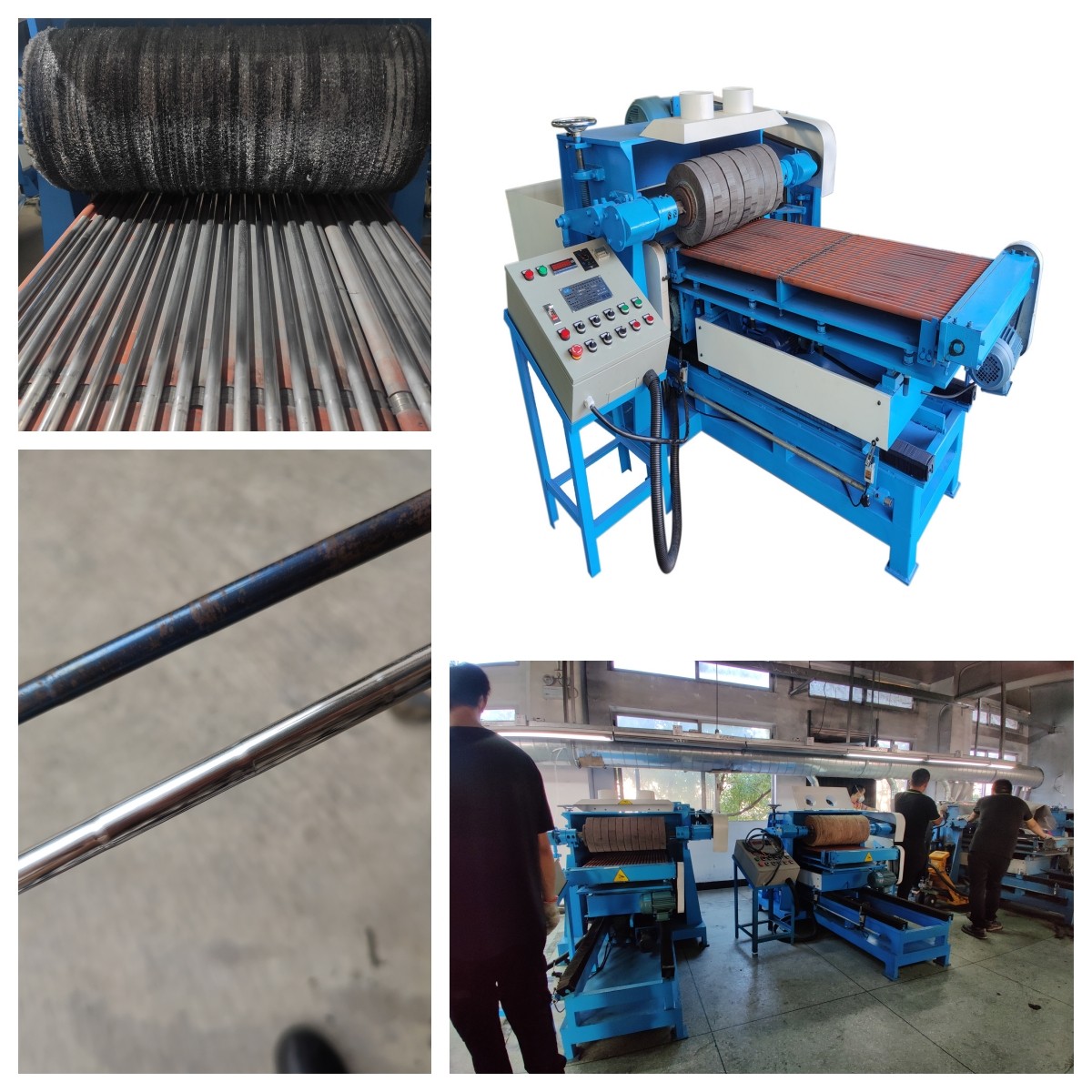 2:抛光轮旋转对来回推进的圆管进行抛光处理,工作台自行左右摇摆