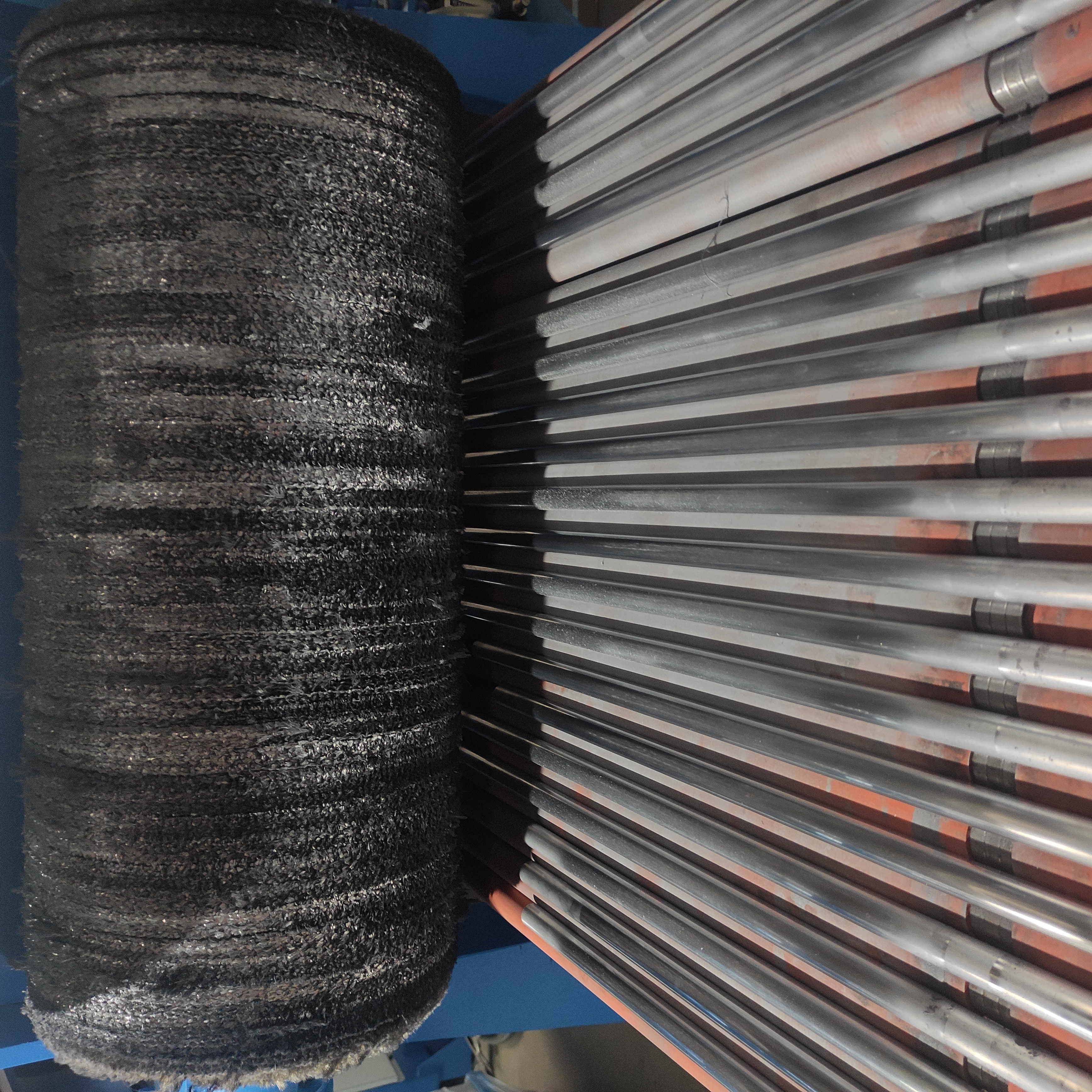 操作要点:将所需抛光的圆管放在胶辊治具上,根据产品直径大小排满整个胶辊平台