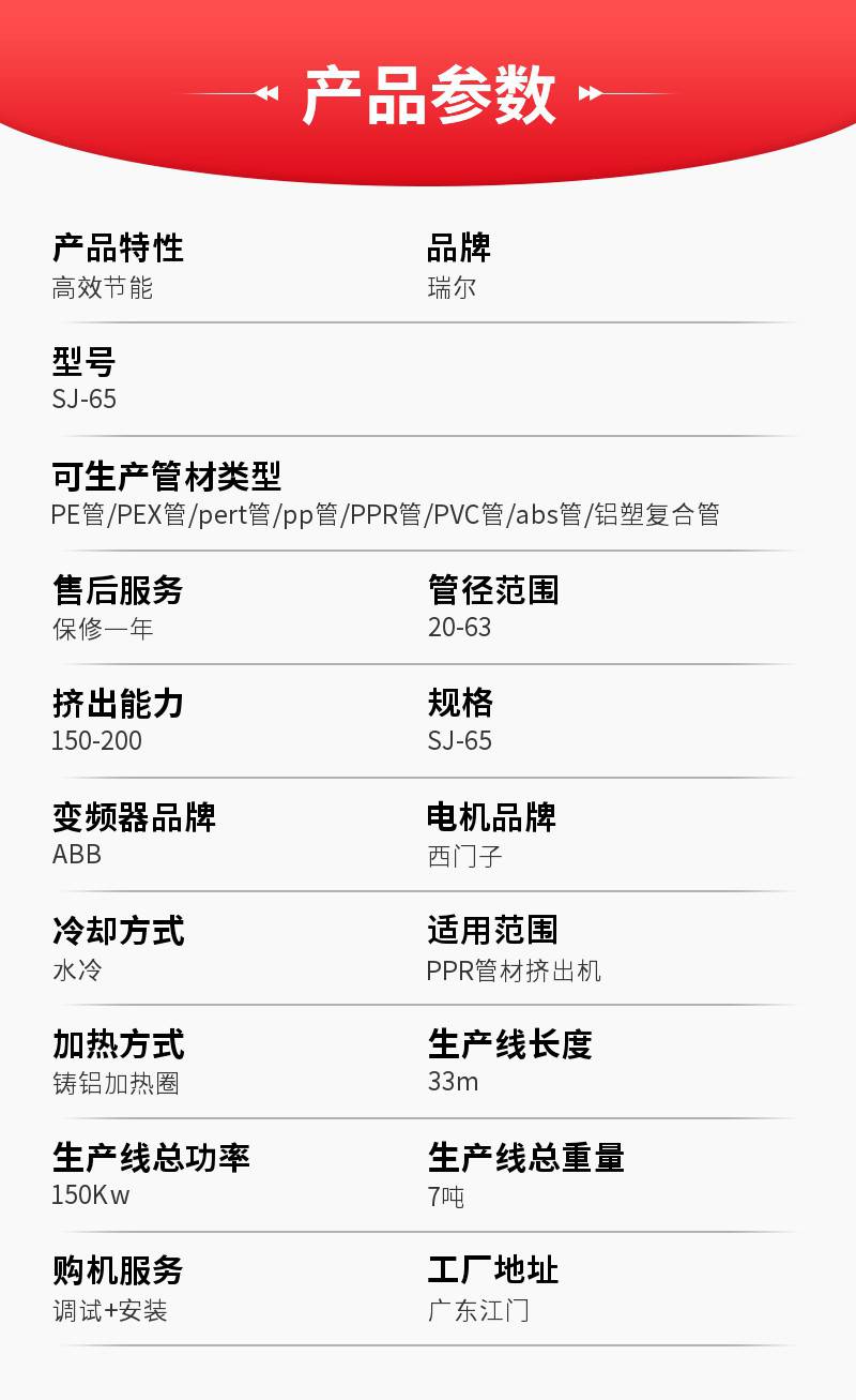 | 可生产管材类型 | PE管、PEX管、pert管、pp管、PPR管、PVC管、abs管、铝塑复合管 | |