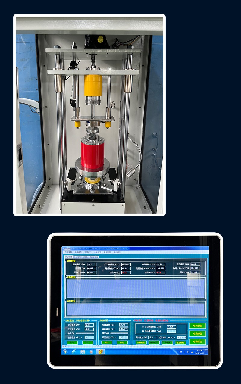 本仪器主要测试薄的热导体、导热硅胶片、导热树脂、氧化铍瓷、氧化铝瓷等细小材料的热阻以及固体界面处的接触热阻和材料的导热系数。检测材料一般为固态片状,如加围框也可检测粉状态材料及膏状材料。