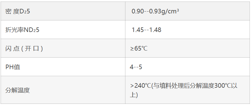 4、本品作为无机填料表面处理剂,可处理碳酸钙、滑石粉、高岭土,以增加 填料的疏水性、分散性。
