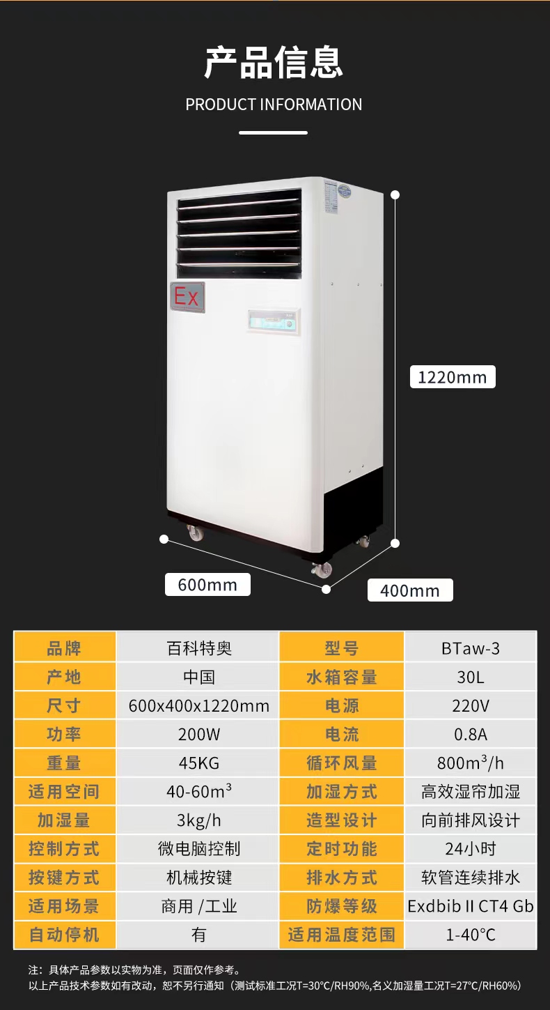 杭州特奥环保科技有限公司发布的百科特奥防爆加湿机BTaw-03防爆湿膜加湿机3公斤图集库