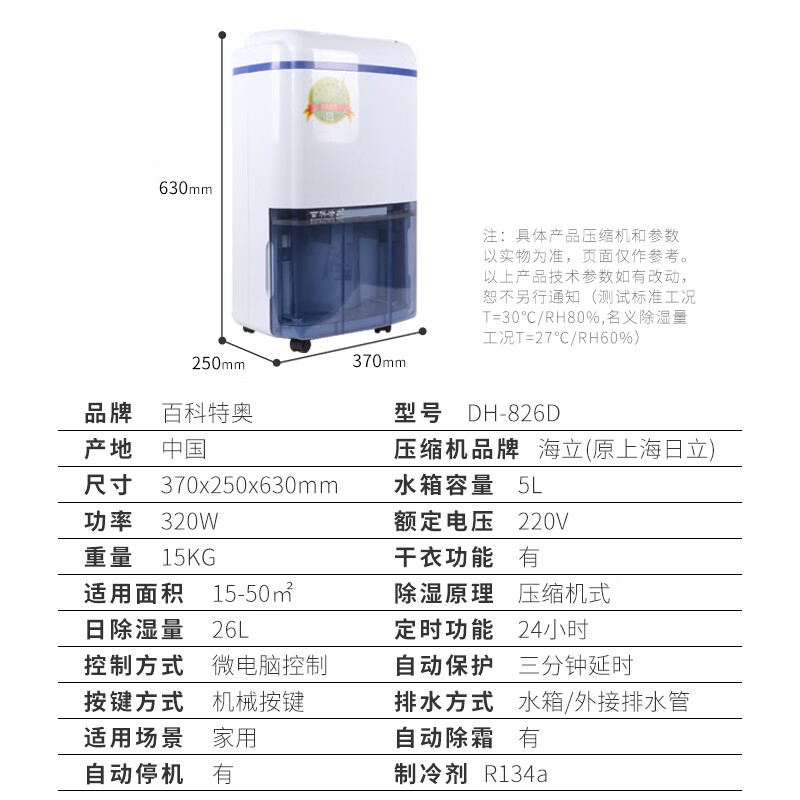 杭州特奥环保科技有限公司发布的DH-826D净化型家用除湿机26升/天轻音运行蓝白色图集库