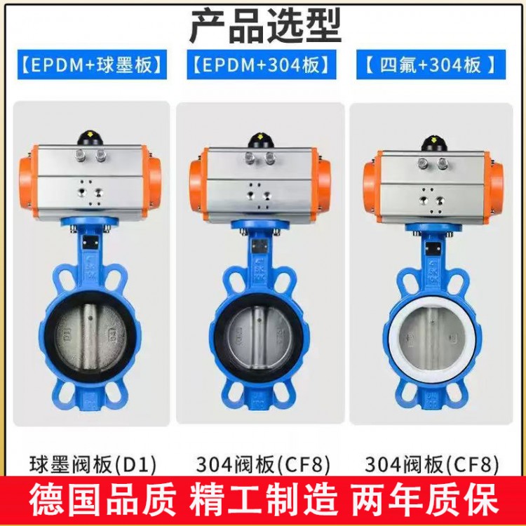 进口气动对夹式蝶阀主要零部件可选材料