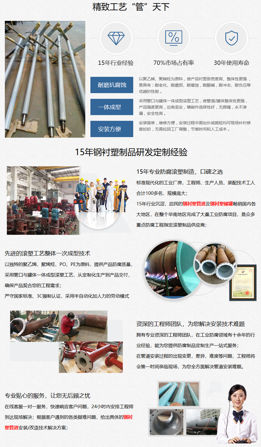 15年专注钢衬塑管道/储罐制造 为您提供钢衬塑防腐制品一站式定制服务