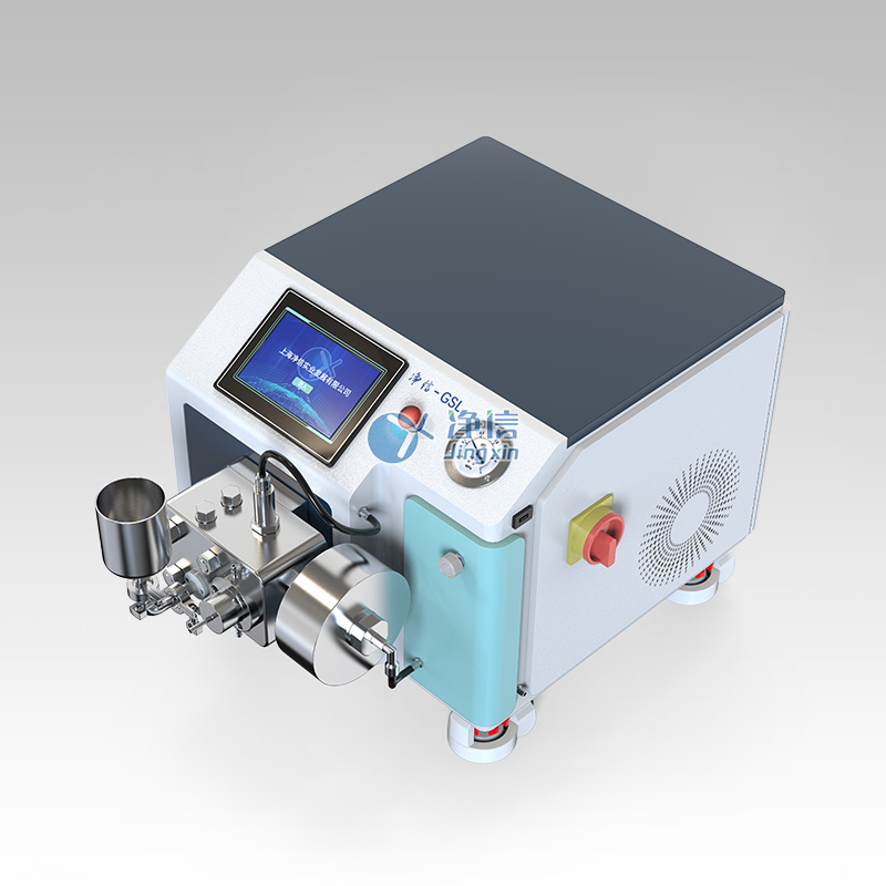 上海净信高压均质机GSL-15QD是一种超细粉碎,乳化设备。采用单作用往复柱塞泵加均质阀设计。以压缩 空气为动力源,通过气缸将气体压力转换为液压能,使物料在高压腔内被逐步压缩;高压状态下的物料经均质阀的狭 窄缝隙时,流速剧增,产生强烈的碰撞、剪切、空穴效应,将其中的大颗粒、液滴等破碎成更小的微粒,实现均质、 乳化或分散效果;此外,还可通过调节进气压力精准控制输出液压,并支持物料循环处理,以达到理想的均质效果。