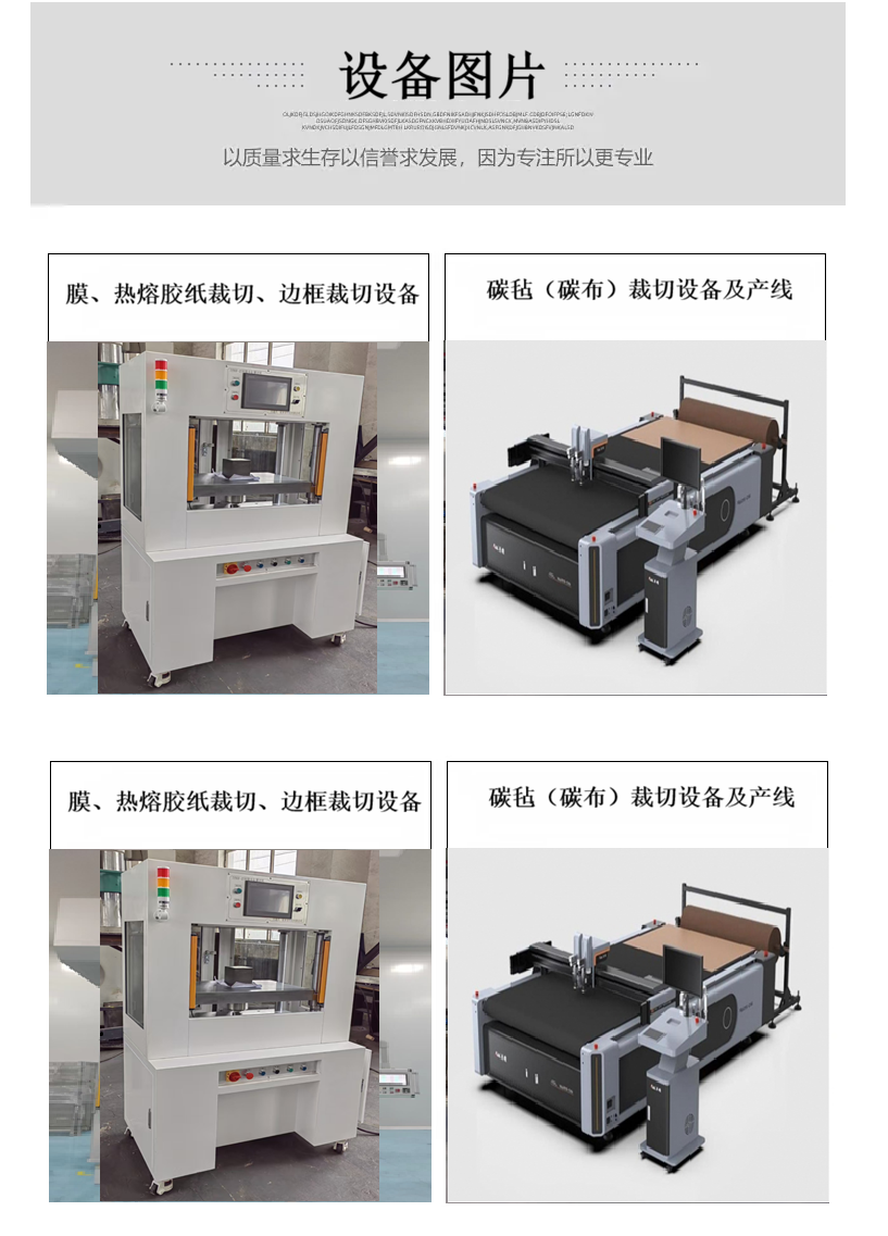 大连天一能装备制造有限公司发布的膜、热熔胶纸裁切、边框裁切、碳毡(碳布)裁切设备及产线图集库