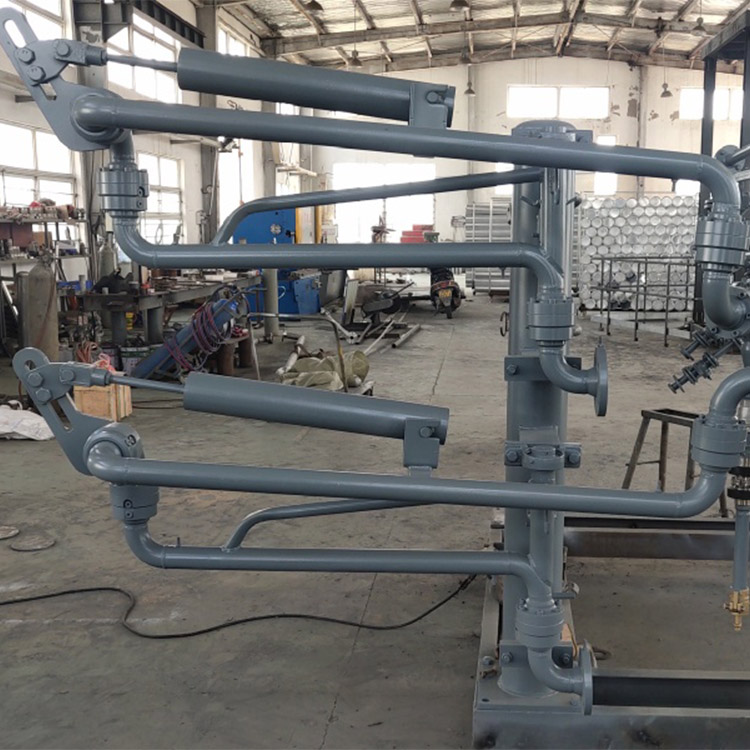 底部卸车鹤管主要由鹤管主体、旋转接头、阀门和软管等组成。鹤管主体负责连接和支撑整个装卸系统,旋转接头则允许鹤管在多个方向上灵活转动,以适应不同高度的装卸需求。阀门用于控制液体的流动,确保装卸过程的安全和准确。软管则提供了一定的柔性和连接性,使得鹤管能够更方便地与运输车辆或储罐对接。