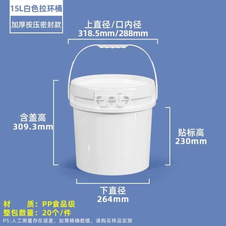 南京水杉塑料制品有限公司发布的15L白色拉环塑料圆桶压盖款图集库