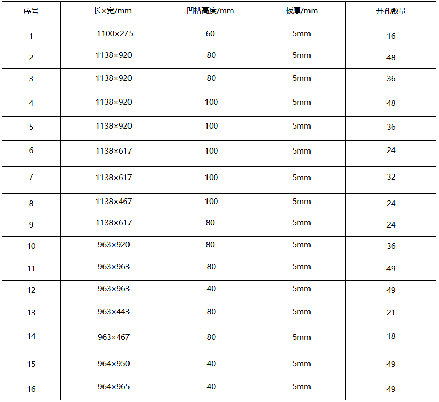 ASB滤板模板规格尺寸参数表: