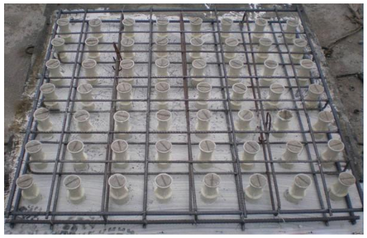 混凝土预制滤板采用立式或平式模板分块浇筑,原料选用C25~C30混凝土标准配制。产品质量符号行业标准,可按用户设计要求规格尺寸计算开孔比例预埋套管、敷设主付双层双向螺纹钢筋,混凝土浇捣、初凝、养护等工艺制作而成。滤板上下平面水平误差±1mm。滤池安装达到整池误差≤5mm,且四边整齐、无翘缺,产品满足滤池设计技术规范要求。