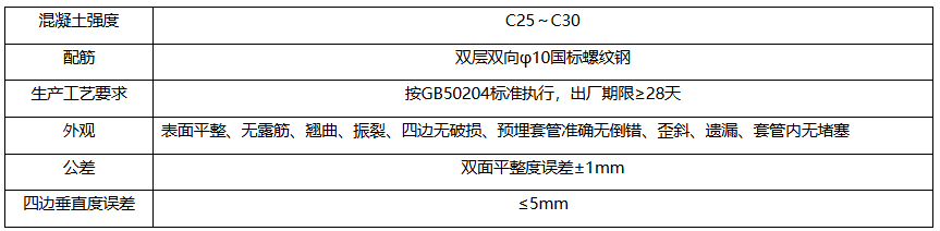混凝土预制滤板技术参数: