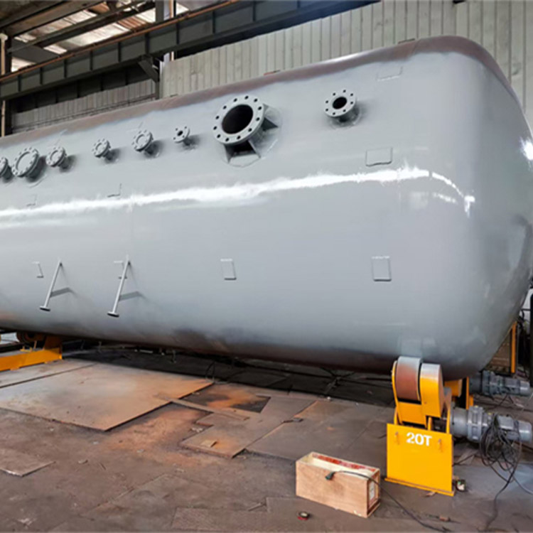 7、水箱:是由筒身和冲压椭圆形封头焊制成,内部设置加强圈,底座固定在预制的工作台上,一端固定,另一端为安装膨胀滚体装置。水箱上设有检修人孔、安全阀接管口、排水口、再沸腾管口、水封筒口、水位计接口、压力表口、温度表口、用水口等。