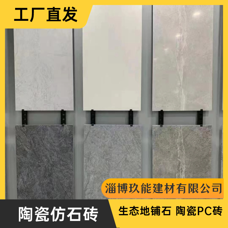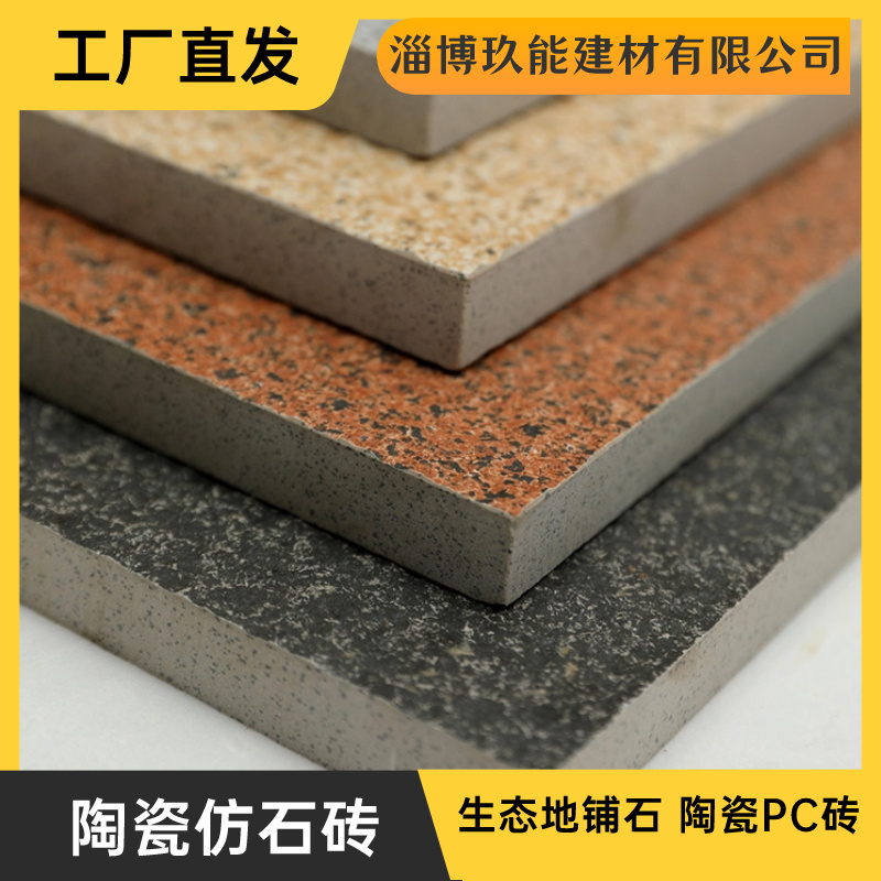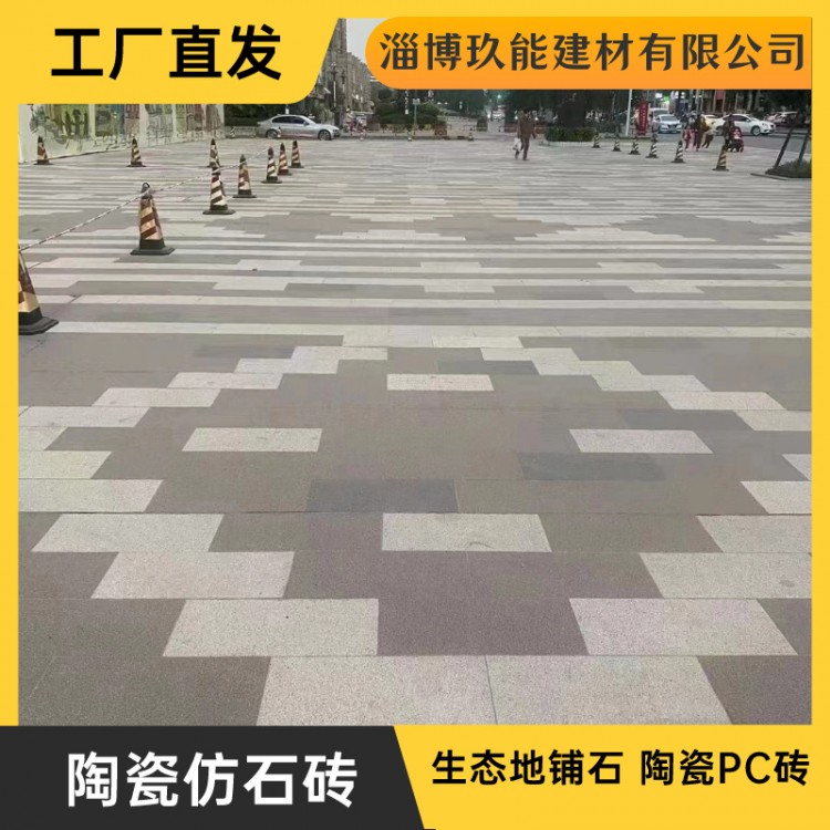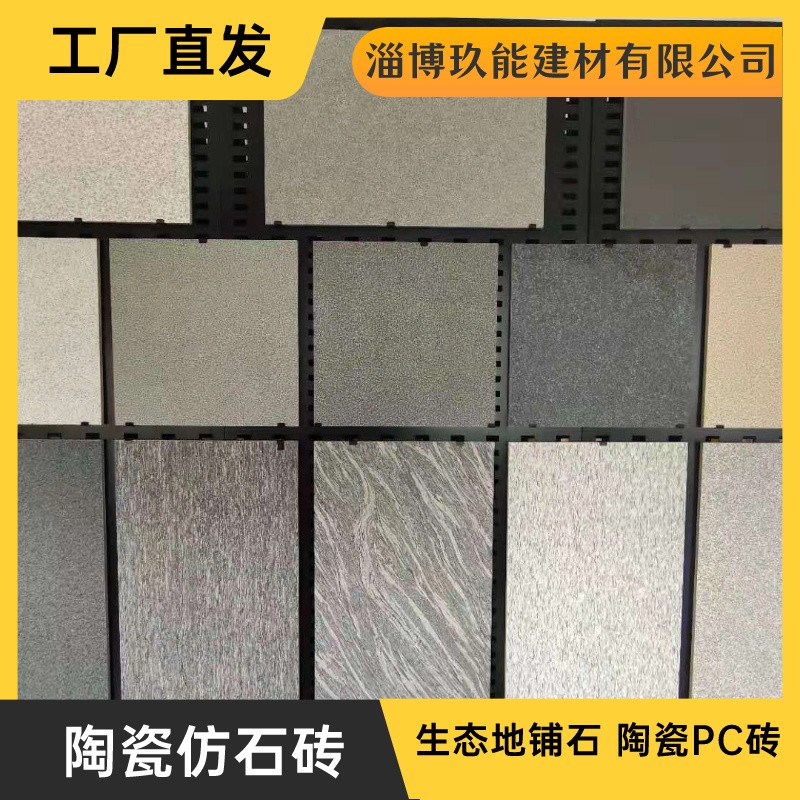 淄博玖能建材有限公司发布的山东生态地铺石厂家 陶瓷PC砖 荔枝面火烧面芝麻黑白灰仿石砖图集库