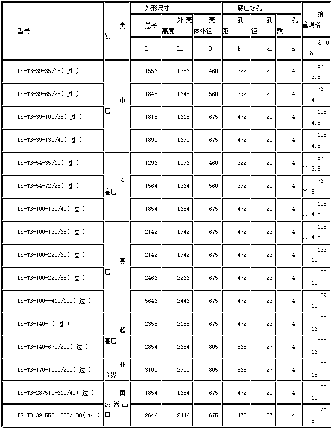 ④原有的排汽管外径、壁厚;