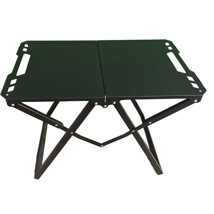 露营折叠桌的特点-结构稳固,适应性强:多数产品配备加粗金属支架(如铝合金、碳钢)或X型/三角铰链结构,展开后稳定性好,能在草地、沙滩、岩石等不平整地面保持平稳。部分款式还配有防滑脚垫或可调节脚长,进一步提升适应性。