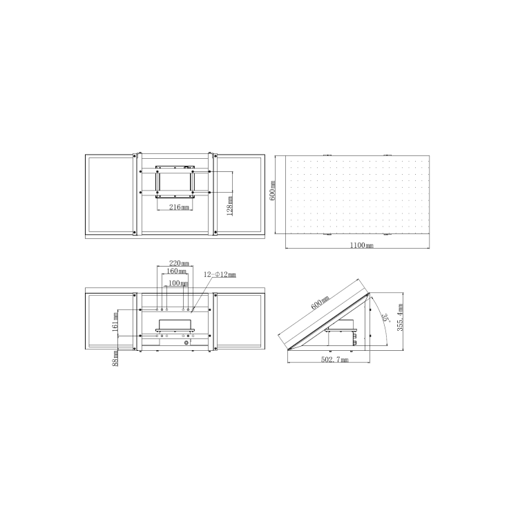 1100 × 600 × 40 mm,8.5 kg