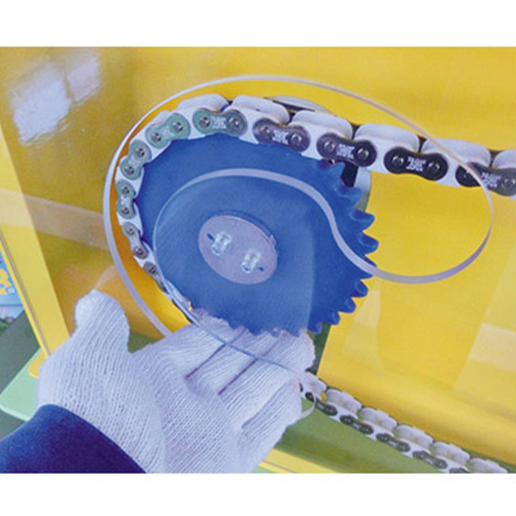 链和链轮齿之间真实伸入肢体,体感被链条夹入时的感觉。 通过模拟体感学习如果实际设备上发生一样的状态会产生多大的事故。