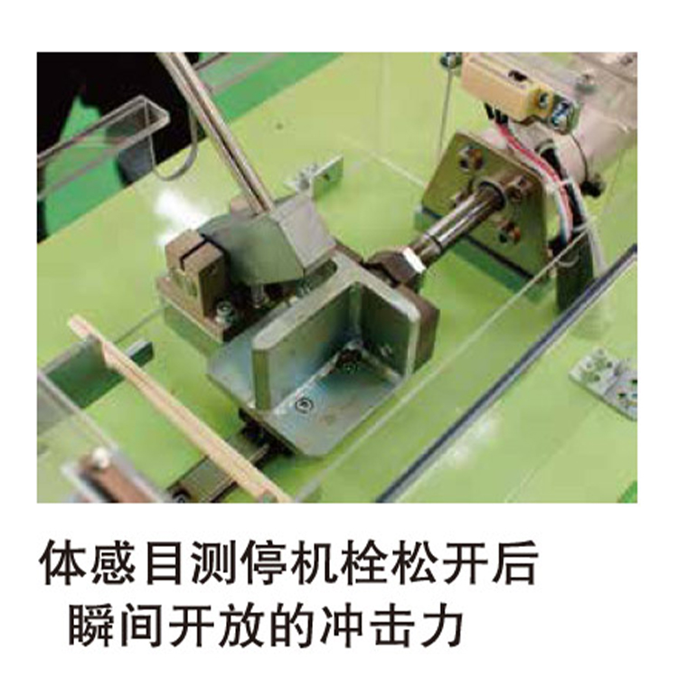 体感气缸的力量和排气的重要性。 空压气缸工作时,模拟阻挡物挂住阻止气缸的正常动作。看起来气缸已停止了动作,但是气缸内还存留着高气压,为让气缸重新动作,试图用手清除阻挡物的刹那存留高气压迅速加压气缸活塞运动,手部差点被夹受伤。观摩体感气压和气缸的力量和学习使用高压设备时候的警告点。