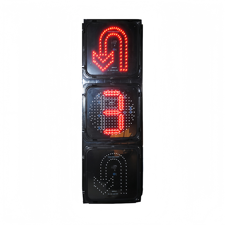 上为红调头灯,中间为黄满屏含倒计时器,下为绿调头灯。