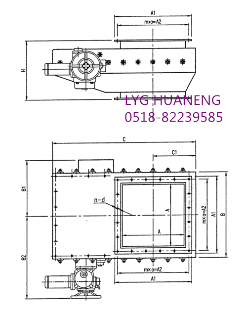 3、双门闸板煤闸门采用双驱动,执行机构布置在门框左右侧。