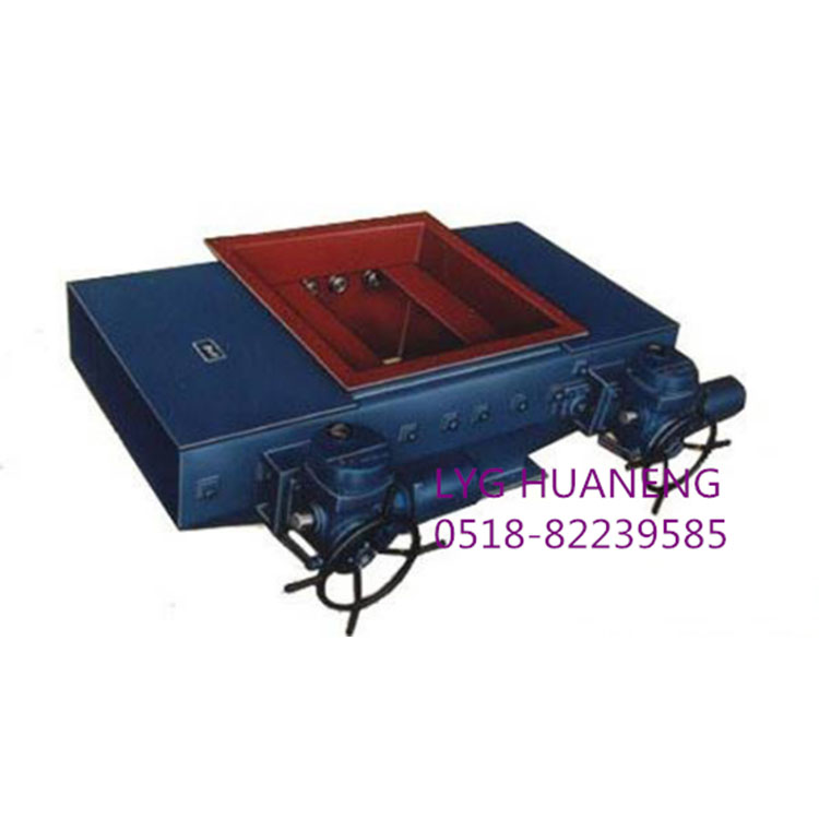 本体支架是安装所有零部件的基本结构,同时也是原煤的通道。进料口是由法兰与煤斗连接,原煤由进料口上部垂直进入,通过闸门的开启,从出料口下部落出,进入下道设备。电动执行机构和传动机构是整台设备的关键部件。