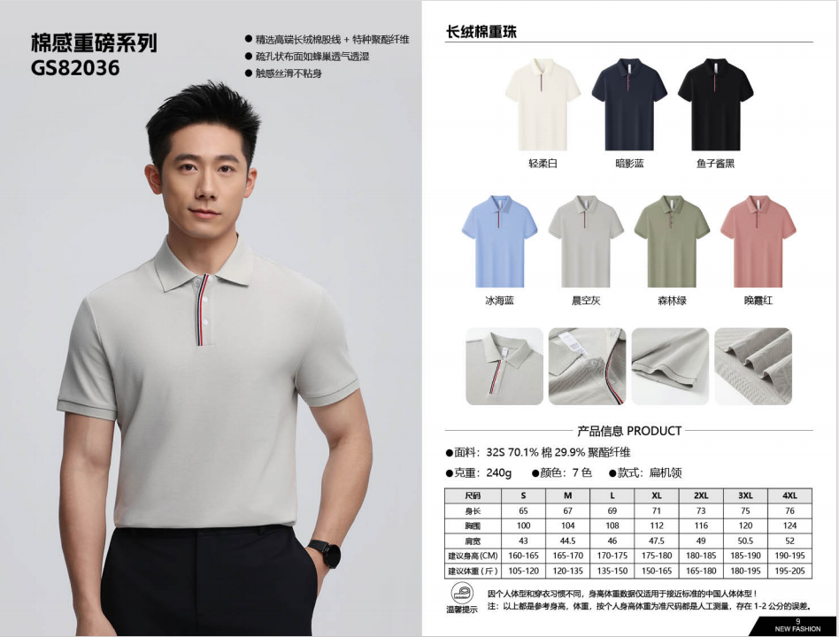 天津市平亚制衣有限公司发布的短袖-棉感重磅系列GS82036图集库