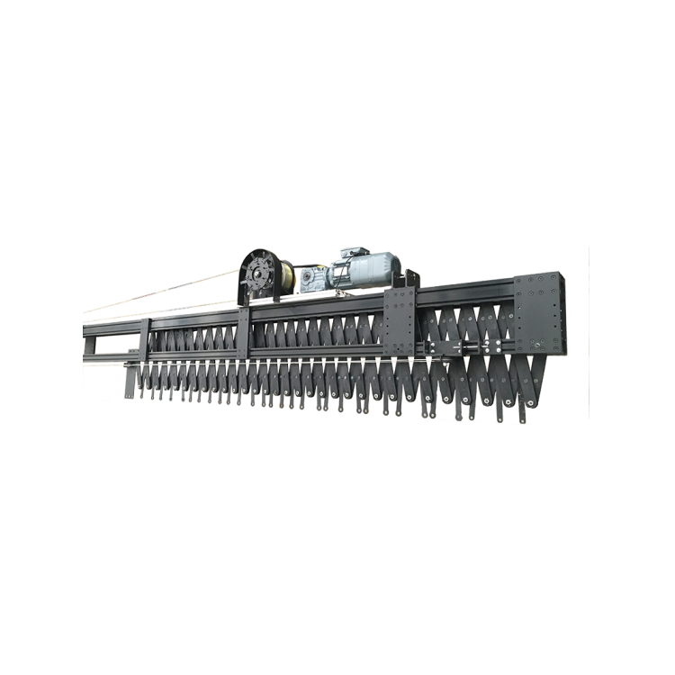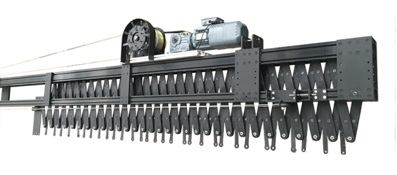 钢丝绳拽引式驱动,该幕布对开系统由拉幕机、控制系统、钢结构架、拉幕导轨、传动装置等组成。配置开闭限位开关和开闭极限开关,采用定速运行,适用于各类剧场、礼堂、多功能厅。