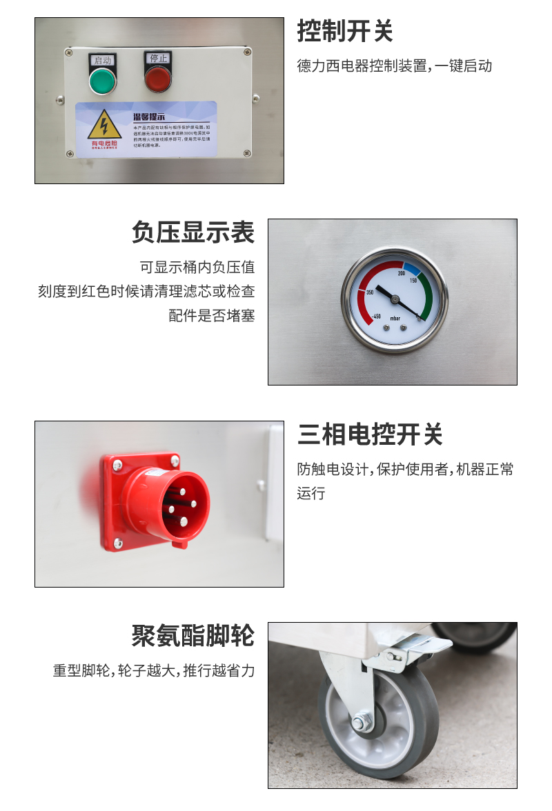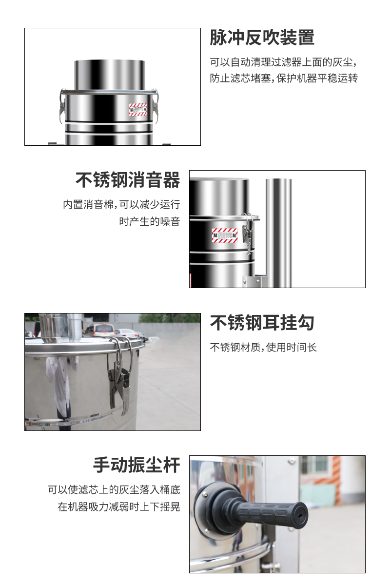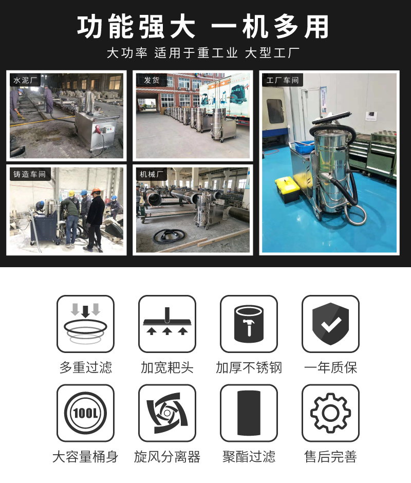 8.适用场所:机械设备配套,机械厂,喷涂车间,打磨车间,加工车间,钢铁厂,包装厂,玻璃厂,仓库,工厂,化工厂,发电厂,制造行业,可吸取物:灰尘,粉尘,铁渣,铁屑,碳粉,钛粉,铁粉,铝渣,钢砂,铝粉,铝末,水泥,颗粒,螺丝,砂石,铁块,铝块,铆钉头,石子等。