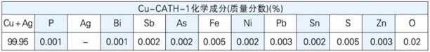 Cu-CATH-1导电铜合金材料的化学成分执行标准为GB/T5231-2001:
