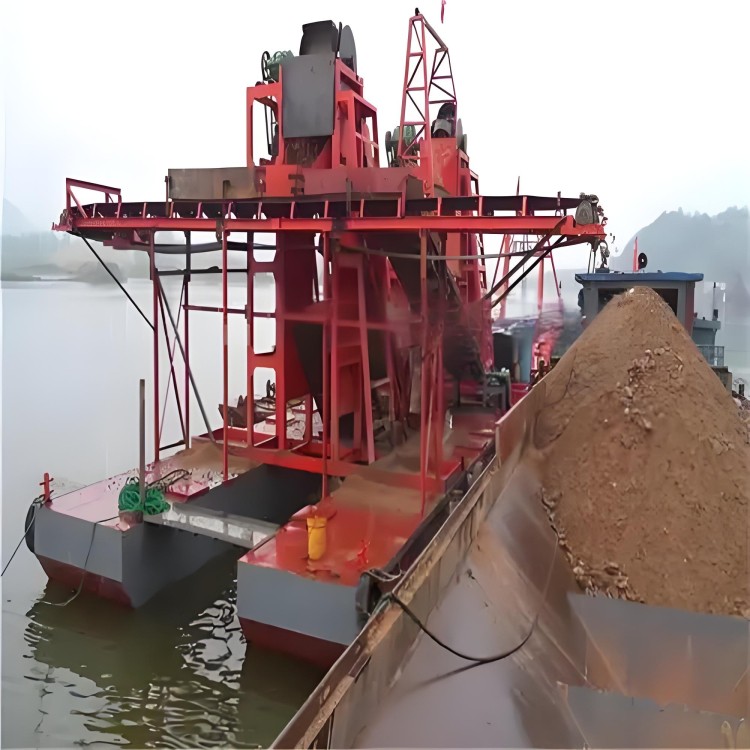 链斗挖沙船是一种广泛应用于河道疏浚、采砂作业、港口建设等领域的工程船舶,其核心工作原理是通过连续循环转动的链条带动多个挖斗(料斗),实现水下泥沙的挖掘、提升、转运和卸载。以下是其基本工作原理的详细分解: