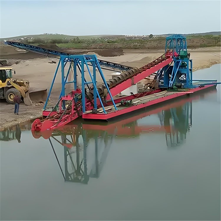 链斗挖沙船是一种广泛应用于河道疏浚、采砂作业、港口建设等领域的工程船舶,其核心工作原理是通过连续循环转动的链条带动多个挖斗(料斗),实现水下泥沙的挖掘、提升、转运和卸载。以下是其基本工作原理的详细分解: