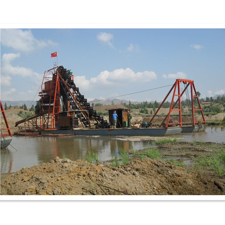 挖斗采金船是一种集挖掘、提升、筛分、洗矿、重力选矿富集于一体的移动式水上采金设备,主要用于从河床、古河道或浅水沉积砂矿中开采砂金。其核心功能在于连续、快速地从砂砾中分离并富集黄金颗粒。