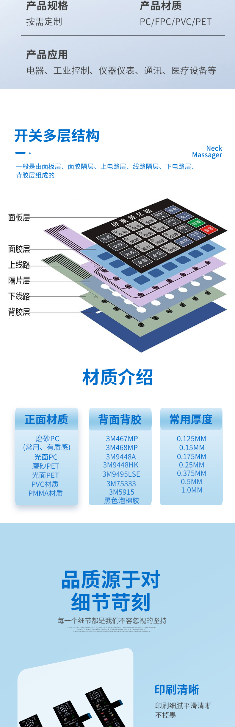 • 触摸按键面板 薄膜开关面贴