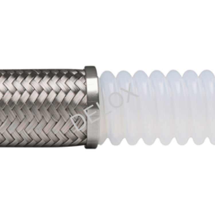 中型波纹PTFE钢编管Convoflex®系列,食品级材质,大流量设计,内部易于排水和清洗,耐高温和低温,耐强腐蚀,加厚的PTFE使抗渗透性加强,使用寿命延长,可用于输送各种化学液体。适合把PTFE翻边至接头密封面,实现全PTFE流体接触面,防止物料对PTFE以外物质的腐蚀风险。CXB电阻R≦106Ω。