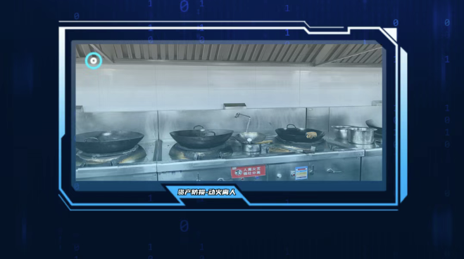 后厨烹饪作业区,出现人员离开忘记关火时,动火离人摄像机可及时发现,发出异常报警提醒,防患未然。