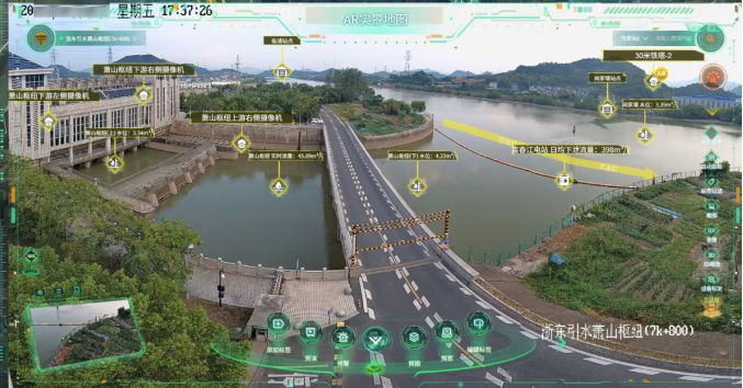 感知融合方面,双光谱云台内置船只识别算法监测非法盗采行为;高光谱技术实时反演8种水质参数,实现水质异常事件非接触式连续监测;雷视云一体机对航道船只进行抓拍取证规范通航秩序;声振温传感器结合算法监测水泵机组等设备异常。