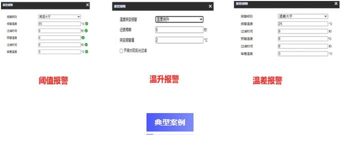 支持阈值、温升、温差等多种报警规则,用户可根据不同场景需求在后台灵活配置,精准预警,减少误报。