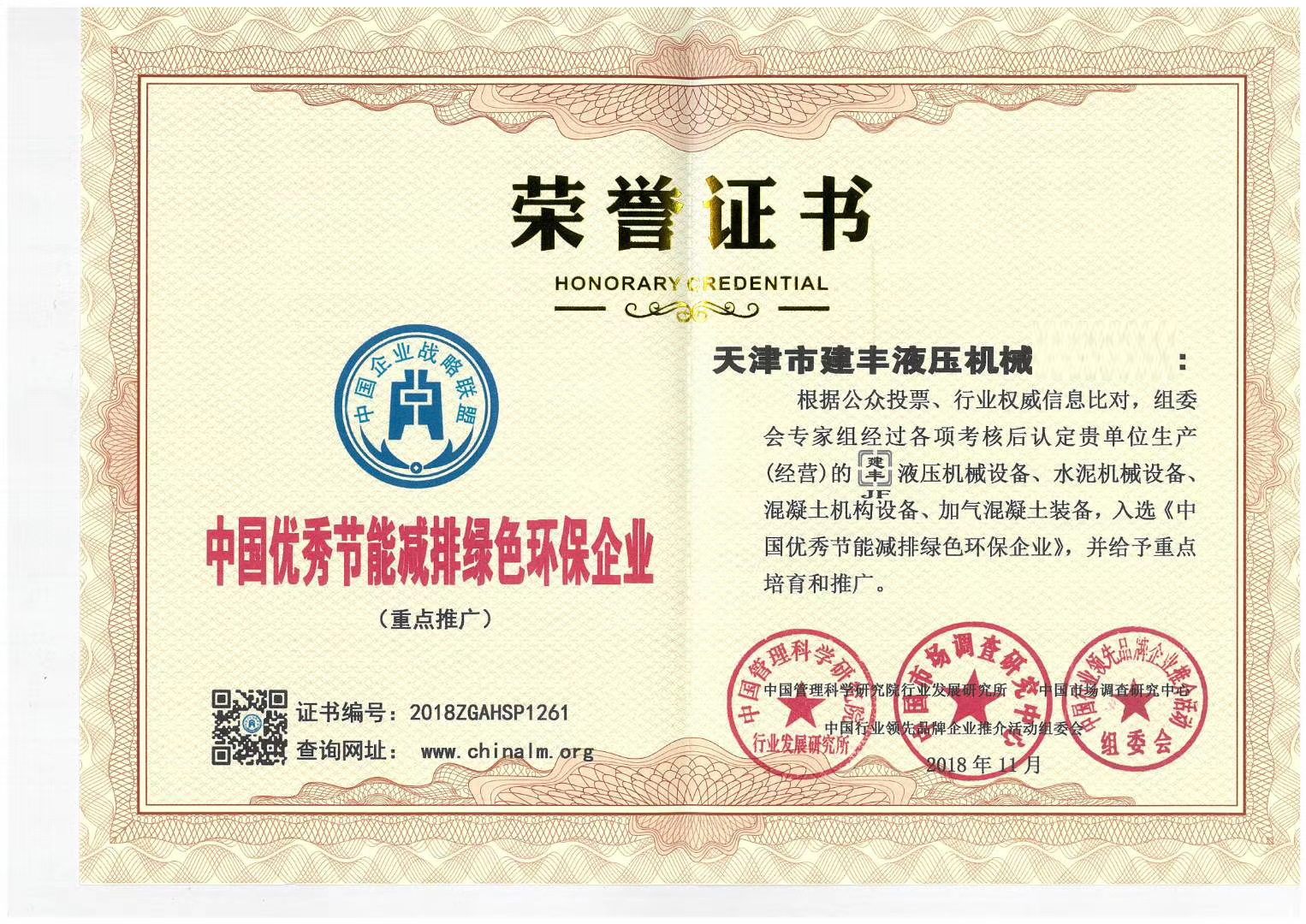 | 发证机构: | 中国管理科学研究院行业发展研究所 | 发证时间: | 2018-11-01 |