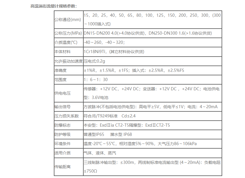 高温涡街流量计特点: