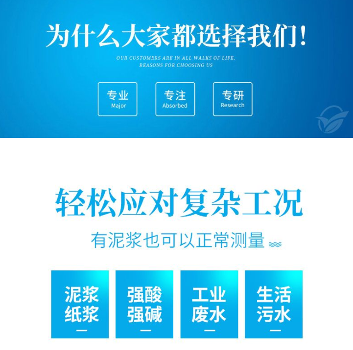 CYX-DC系列电磁流量计主要用于测量封闭管道中的导电液体和浆液中的体积流量。包括酸、碱、盐等强腐蚀性的液体。电磁流量计广泛应用于石油化工、钢铁冶金、给水排水、水利灌溉、水处理、环保污水总量控制、造纸、医药、食品等工、农业部门的生产工艺过程流量测量和控制;适用于导电液体的总量计量。测量管内无阻碍流动部件,无压损,直管段要求较低。