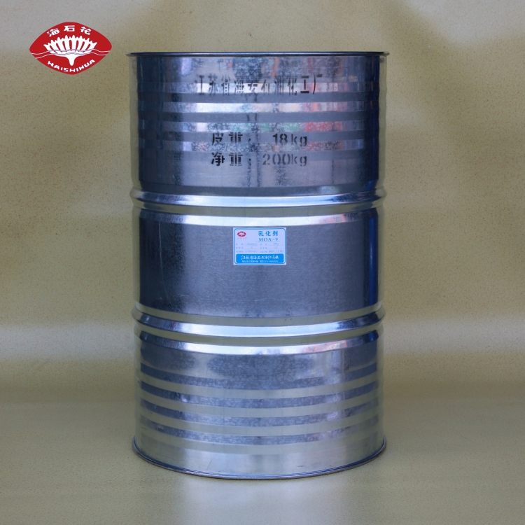 MOA-9易溶于水,具有优良的乳化、净洗、润湿性能,在毛纺工业中作羊毛净洗剂及脱脂剂、织物的精练剂、净洗剂;可作为液体洗涤剂的重要组成部分;在和软膏生产中作乳化剂;对矿物油和动、植物油脂均有好的乳化、分散、润湿性能;还可作为为玻璃纤维抽丝油剂的乳化剂。