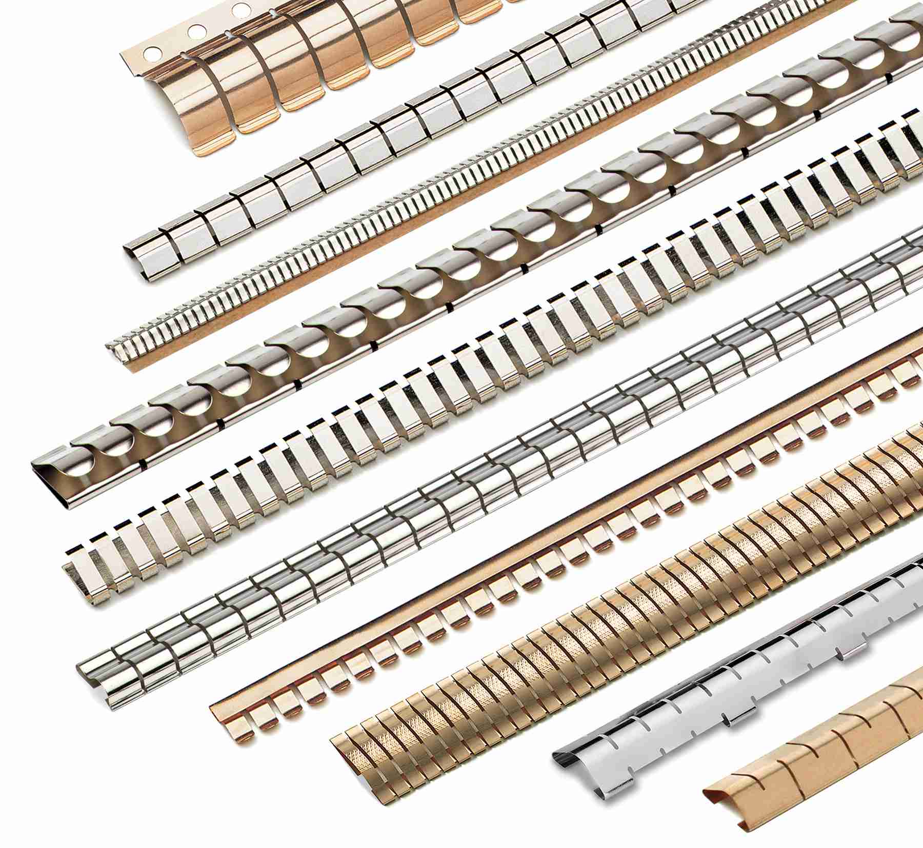 铍铜簧片(BeCu Fingerstock)具有优秀的抗压性和回弹性,和耐腐蚀性,并提供很好的宽频电磁屏蔽效果,特别适用于通讯机柜及电脑,屏蔽室的柜室门,面板, 插拔件的间隙填充。铍铜簧片的安装方式灵活多样,一般有粘贴式,卡钩式,槽式,导轨式 螺钉紧固式等。 金属簧片衬垫是所有导电衬垫中应用频率最宽、屏蔽效能最高、可压缩变形范围最大、抗老化及抗疲劳性能最好的一类衬垫。与金属螺旋管衬垫相比,金属簧片衬垫可压缩变形范围高达20%~80%;为了安装方便,金属簧片的安装形式既有粘接、又有压接和铆接;同时由于材质一般为铍青铜,其抗电化学腐蚀的能力很强,因而其应用范围明显比金属螺旋管衬垫要大。
