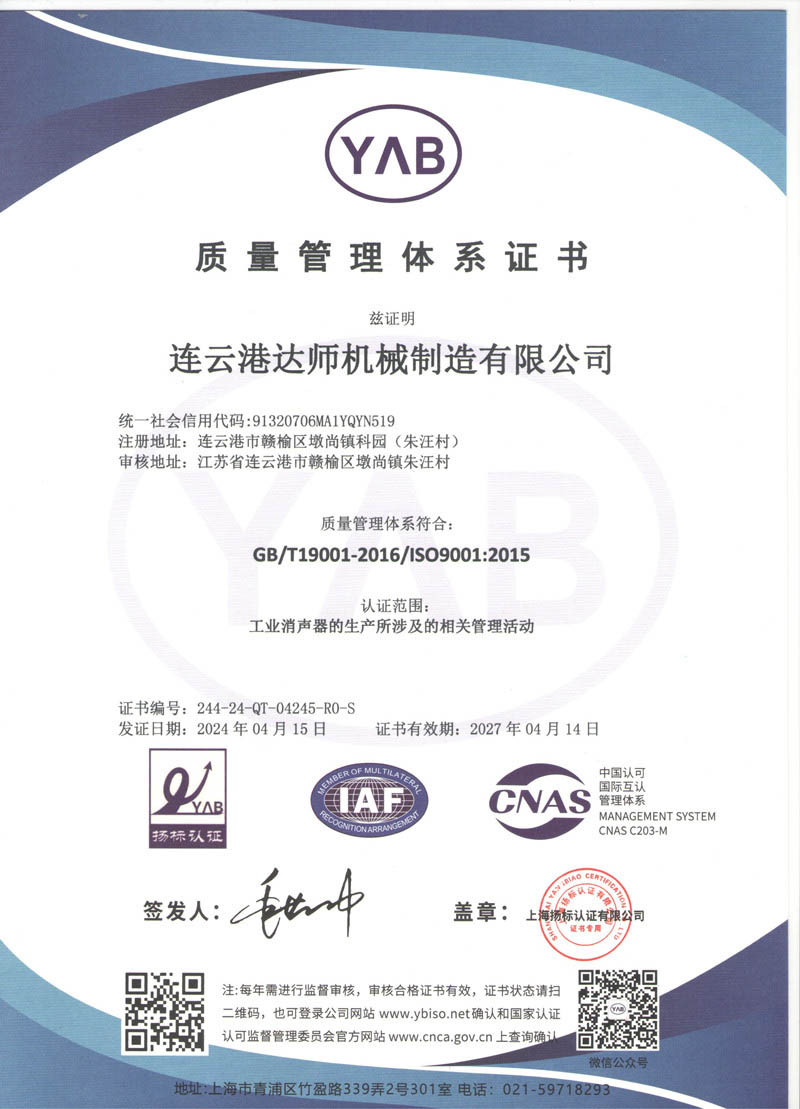 质量管理体系认证证书