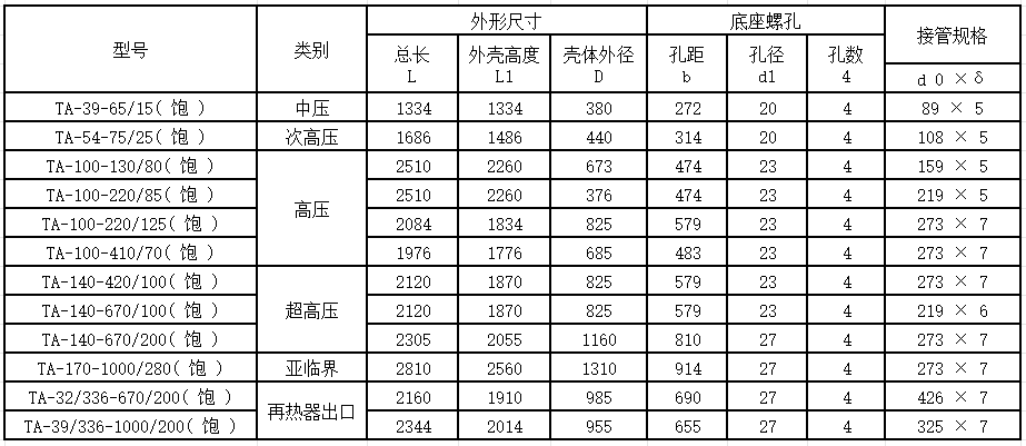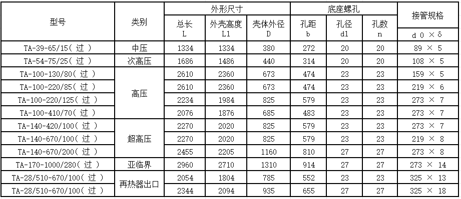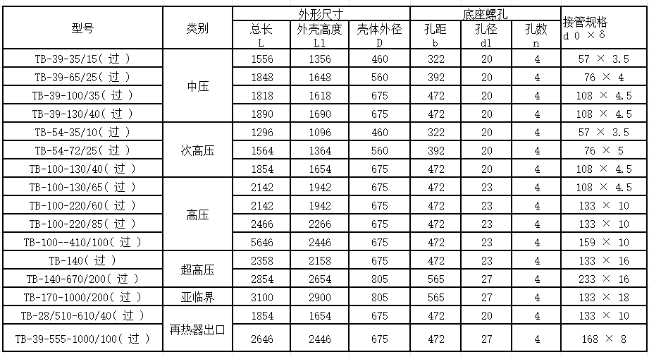 ④原有的排汽管外径、壁厚;
