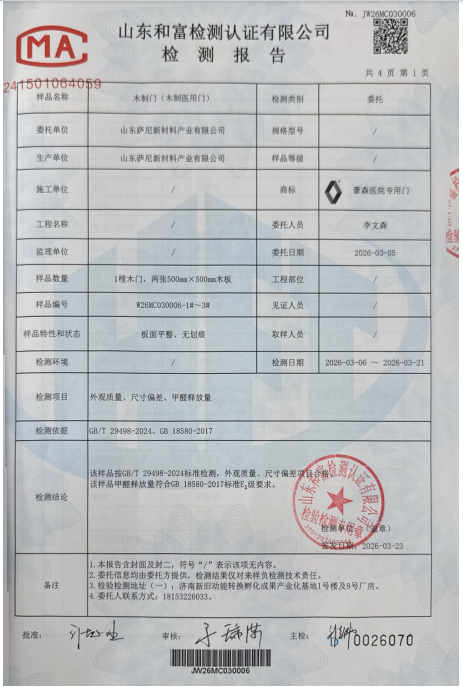 荣誉资质 木质门检测报告