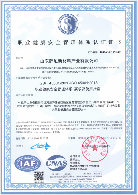 职业健康管理体系认证证书英文 山东世通国际认证有限公司 2026-03-25 2029-03-24