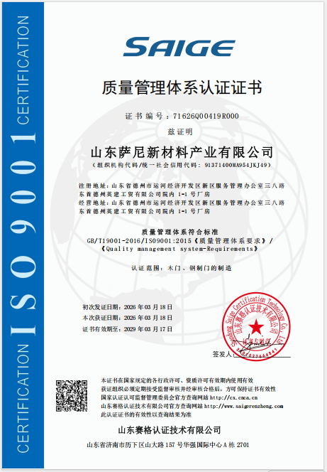 质量管理体系认证证书中文 山东世通国际认证有限公司 2026-03-18 2029-03-17