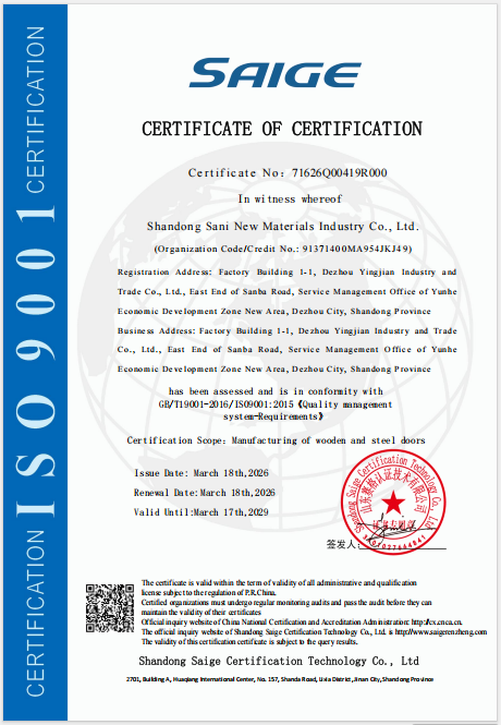 木质门检测报告 山东和富检测认证有限公司 2026-03-23 永久